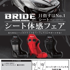 スーパーオートバックス大野城御笠川店にて、BRIDEイベントが下記日程で開催されます。 2025年10月18日
