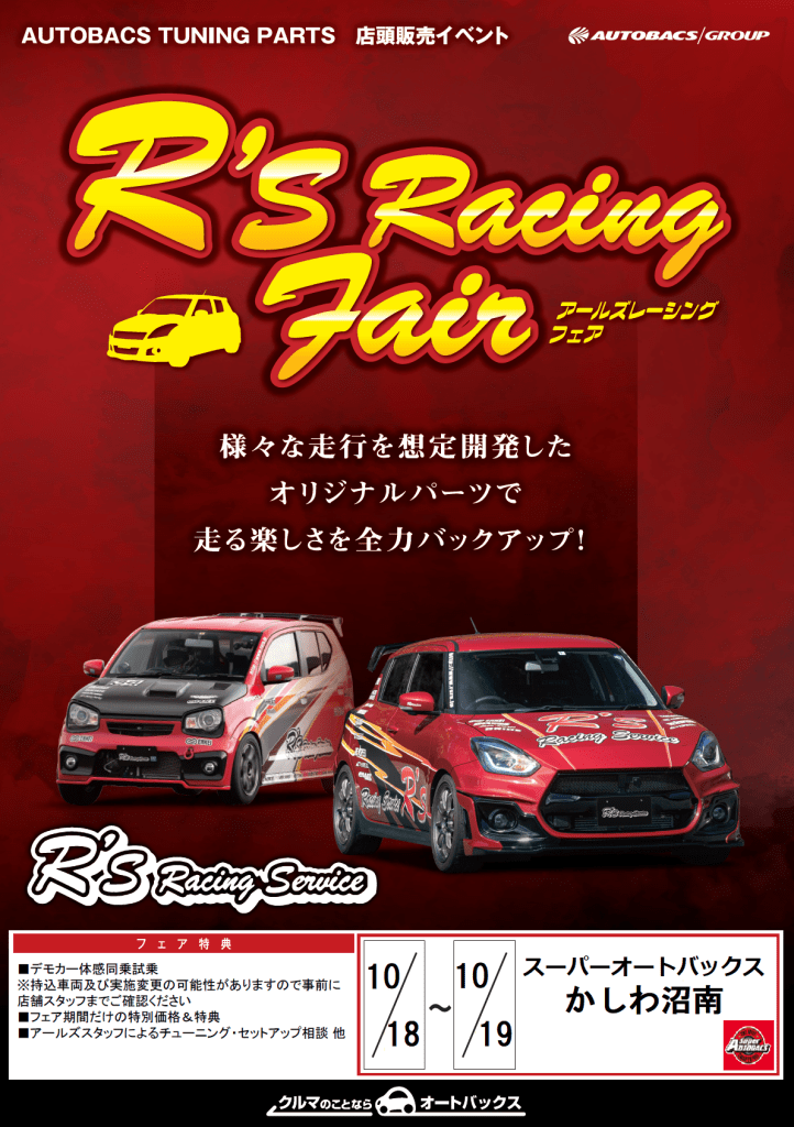 スーパーオートバックスかしわ沼南店にて、アールズレーシングフェアが下記日程で開催されます。