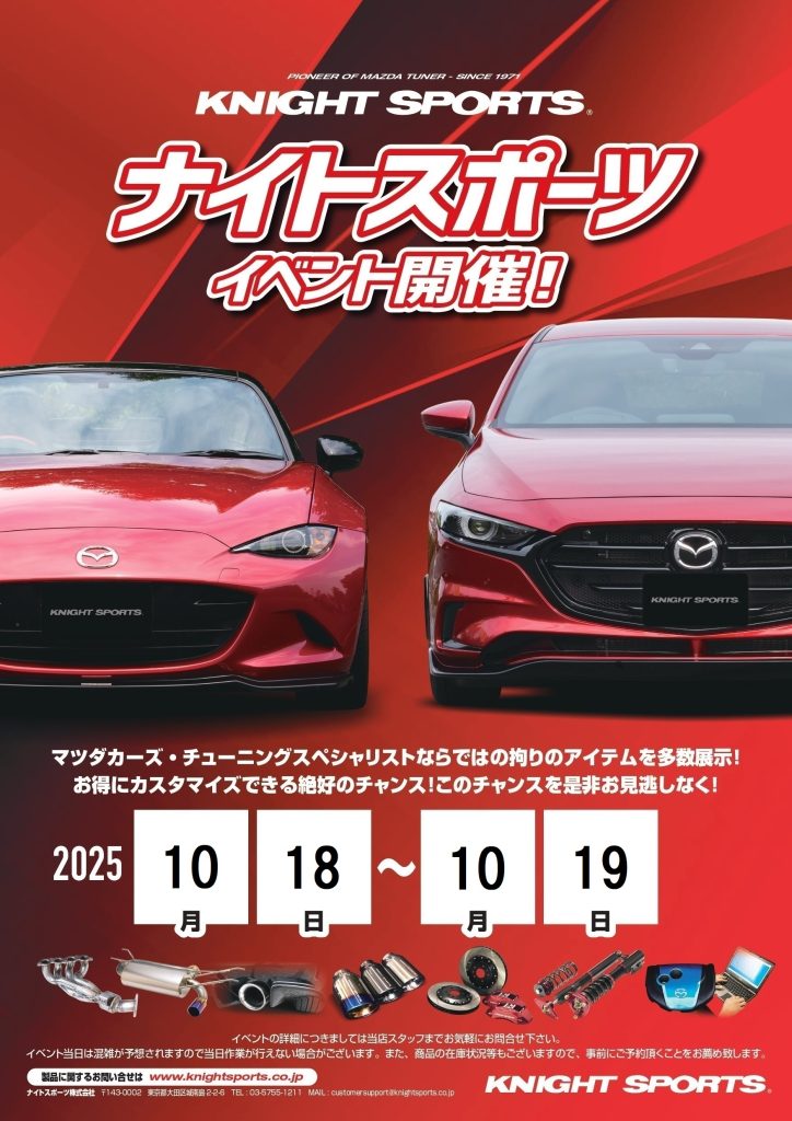 2025年度ナイトスポーツイベントを開催!特典としましてはECU即日書き換え対応・イベント限定商品をご用意しております。ぜひこの機会にご来店お待ちしております!人気のガラポン企画もあります!