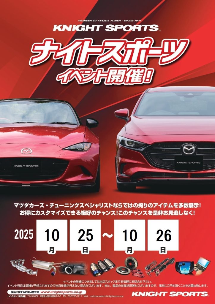 2025年度ナイトスポーツイベントを開催!特典としましてはECU即日書き換え対応・イベント限定商品をご用意しております。ぜひこの機会にご来店お待ちしております!人気のガラポン企画もあります!