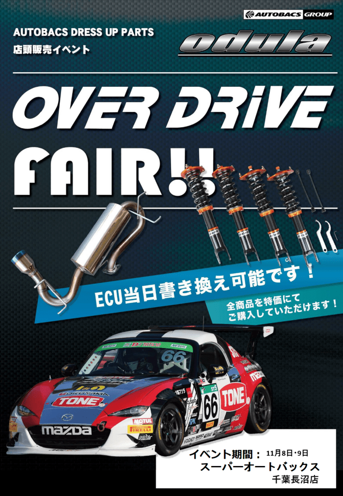 スーパーオートバックス千葉長沼にて、オーバードライブフェアが下記日程で開催されます。