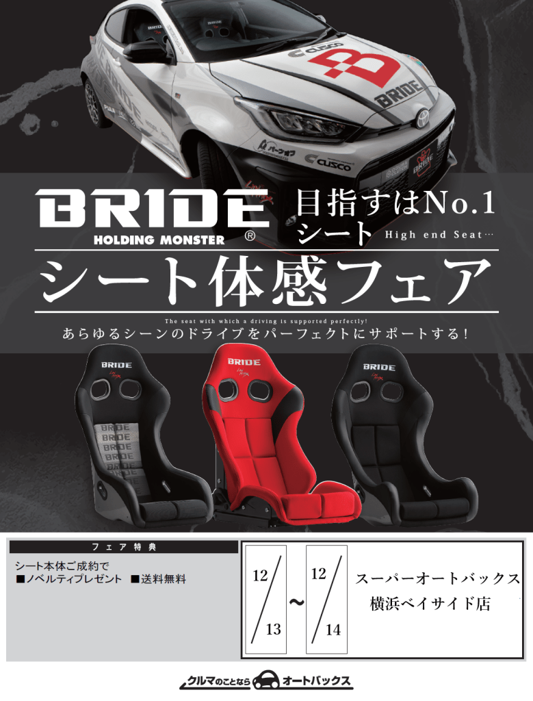スーパーオートバックス横浜ベイサイド店にて、BRIDEイベントが下記日程で開催されます。