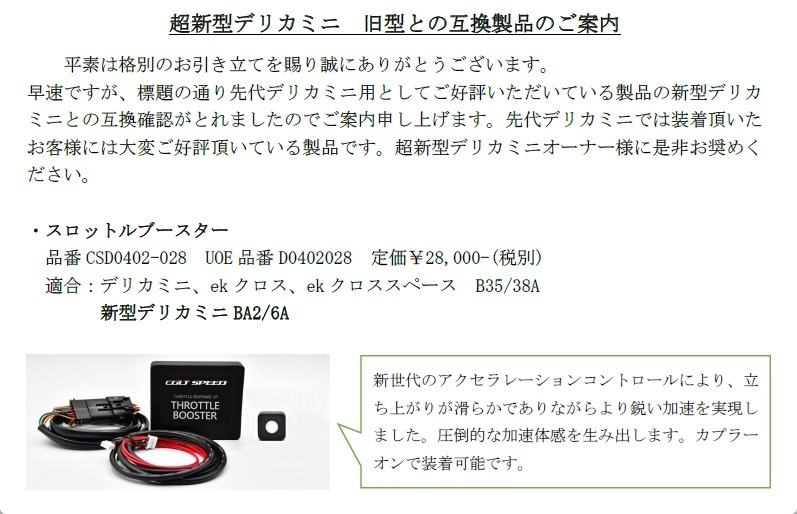 【互換製品のご案内】コルトスピード 新旧デリカミニ