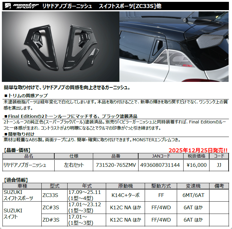 ■ 商品URL ➡ https://www.monster-sport.com/product/parts/ext/rear_parts/zc33s_doorknob_garnish/