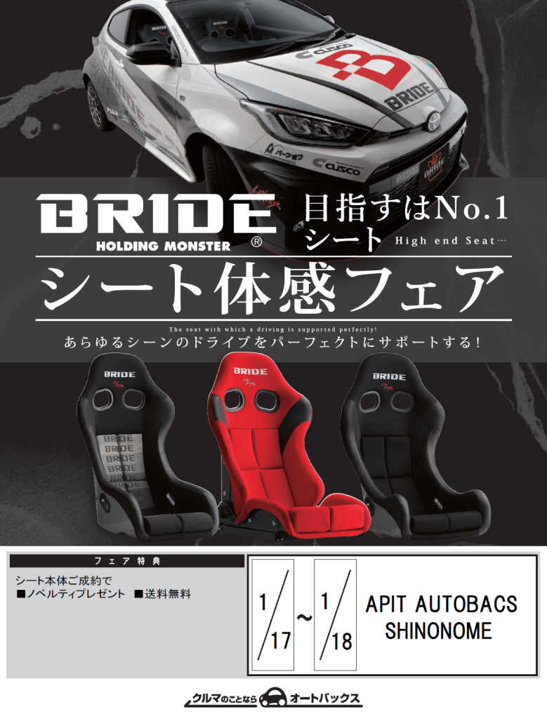 APIT AUTOBACS SHINONOME店にて、BRIDEイベントが下記日程で開催されます。