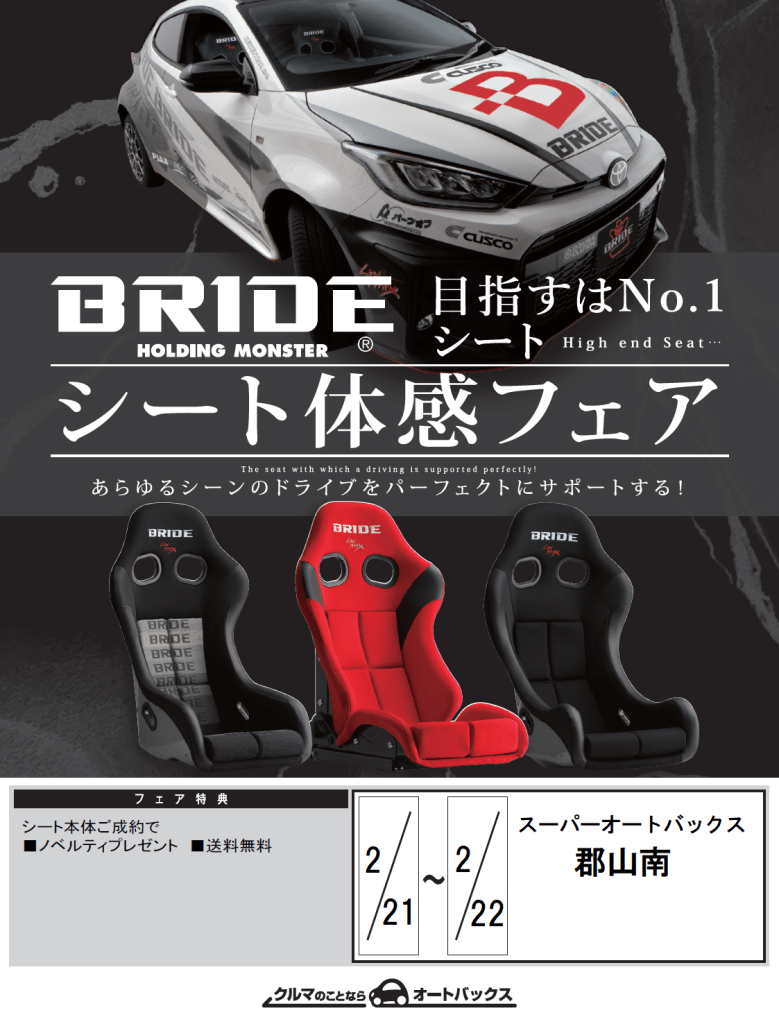 スーパーオートバックス 郡山南店 BRIDEイベント(2月21日・2月22日)のご案内