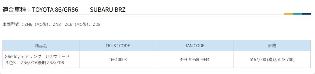 ■商品URL ➡ https://www.trust-power.com/new-products/86_brz_sterring