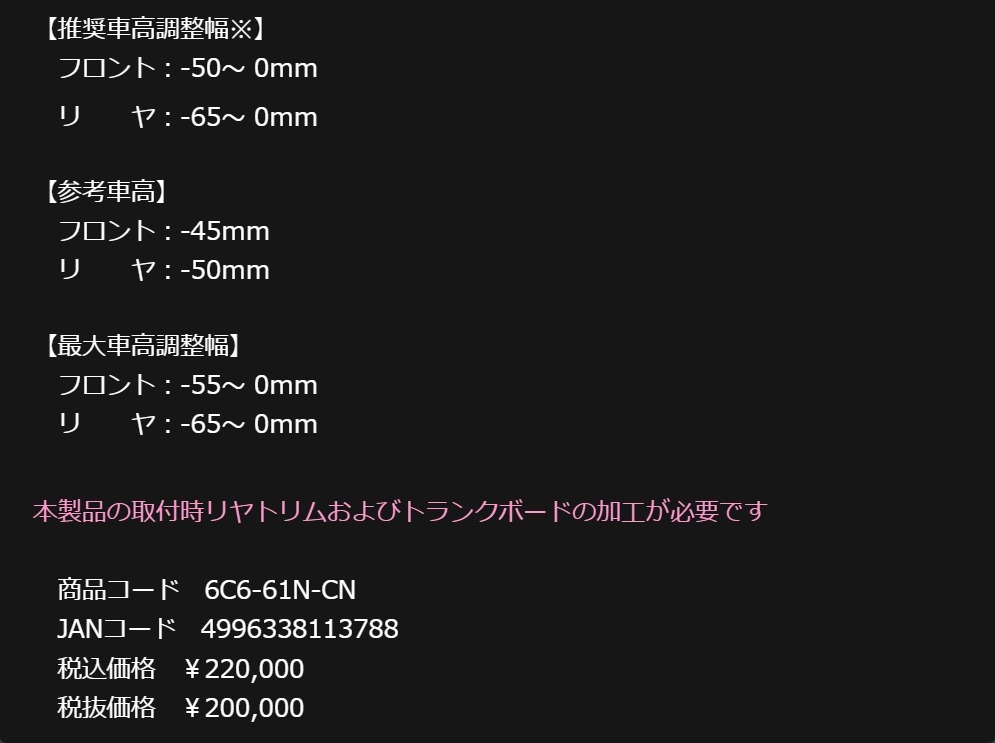 マイナー前車両の適合は未確認です。