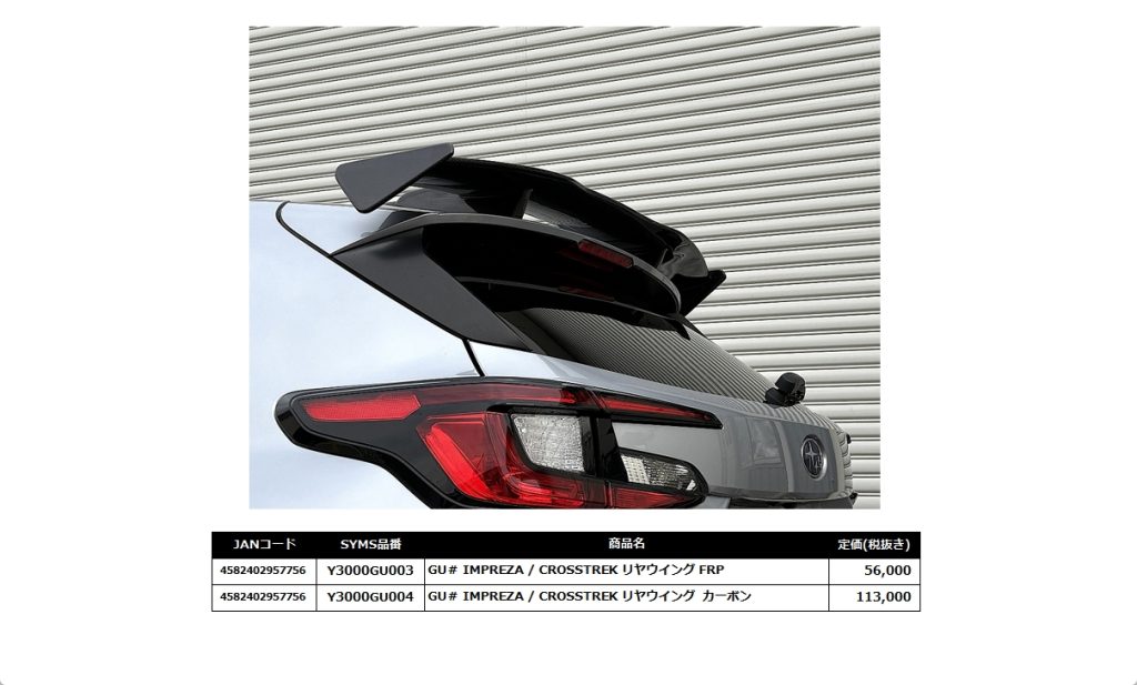 【新商品】SYMS IMPREZA / CROSSTREK GU#用 リヤウイング発売