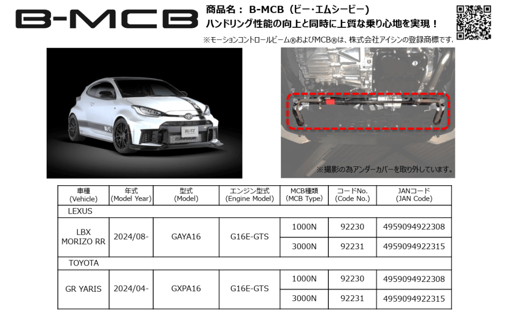 【新製品】BLITZ ビー・エムシービー(B-MCB) LEXUS LBX MORIZO RR(GAYA16)/ TOYOTA GR YARIS(GXPA16) フロント用 発売