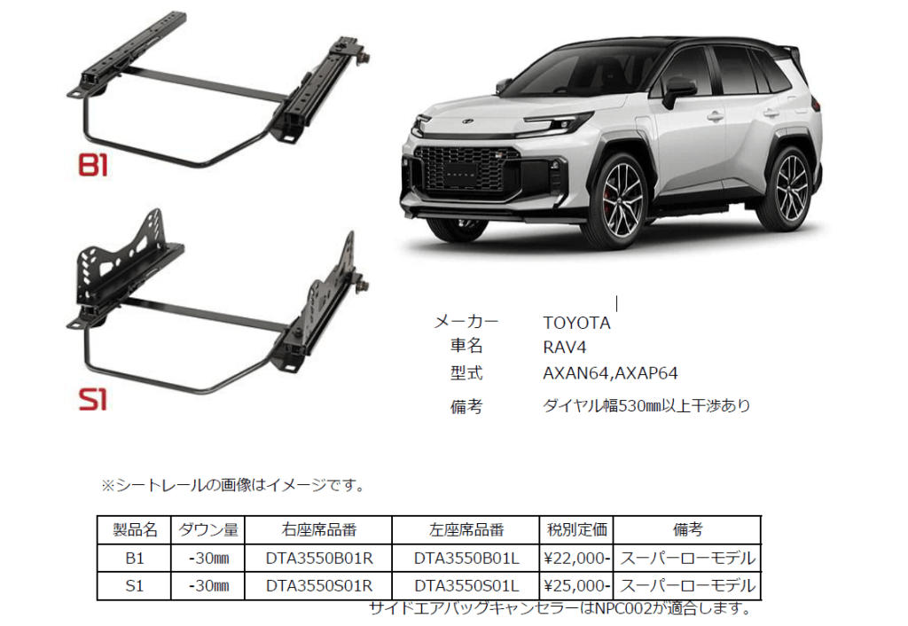 【追加車種】エヌスポーツ シートレール スーパーローモデルタイプ トヨタ RAV4 AXAN64、AXAP64用 発売