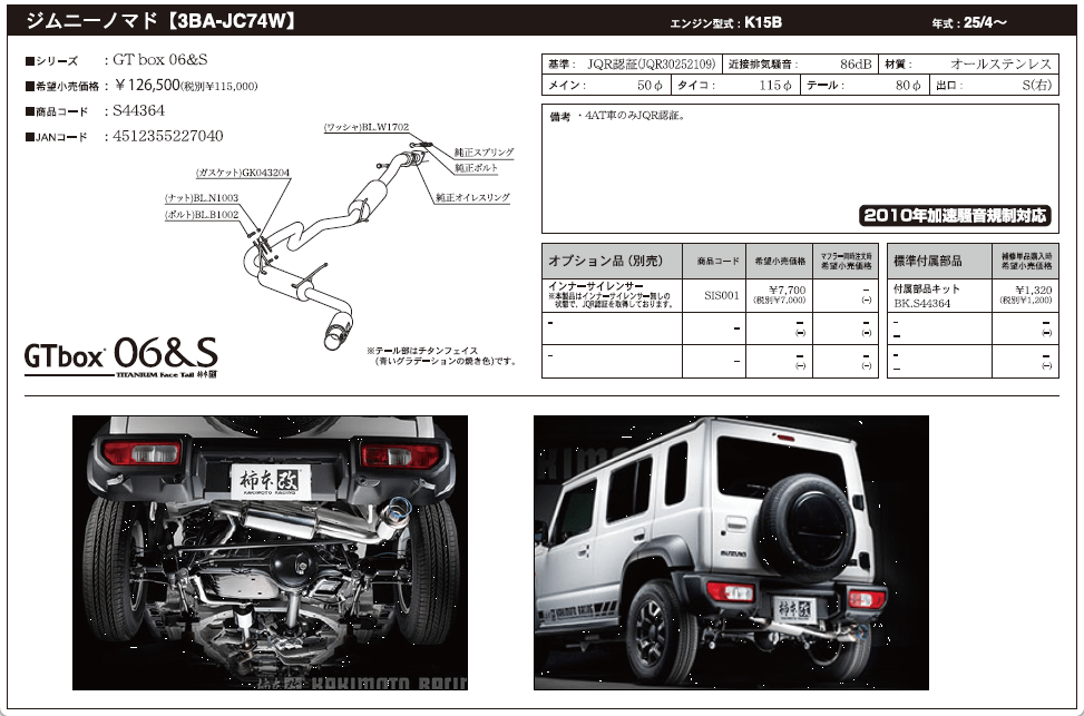 【新製品】柿本改 ジムニーノマド(JC74W)マフラー 新発売!