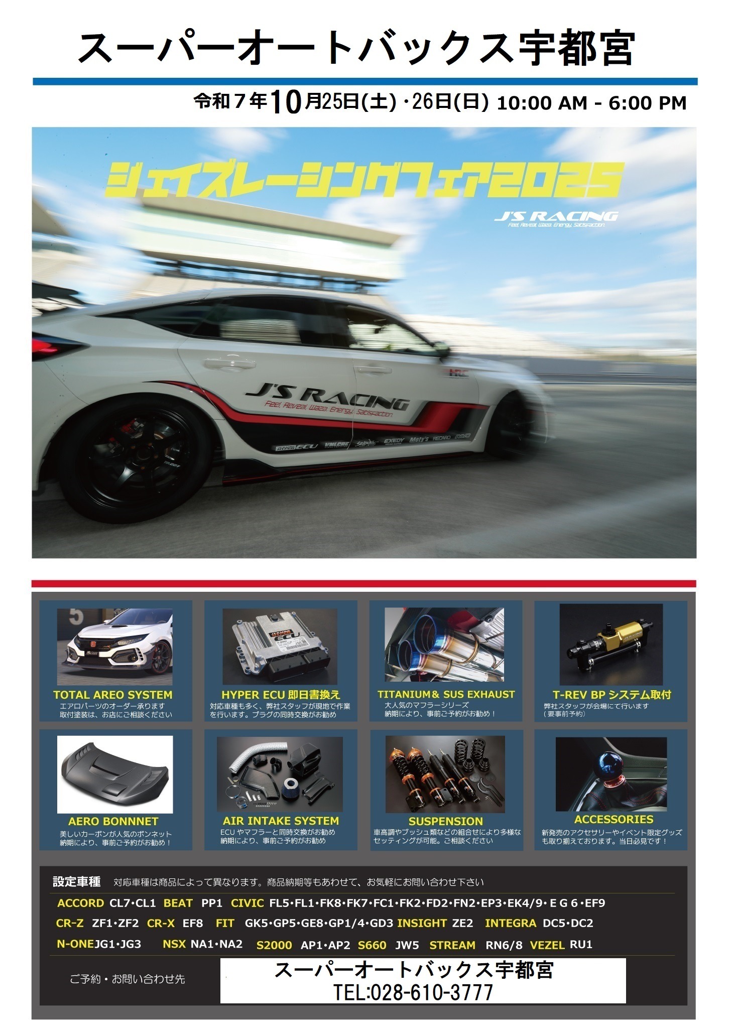 スーパーオートバックス宇都宮店 ジェイズレーシングフェア(10月25日・26日)のご案内